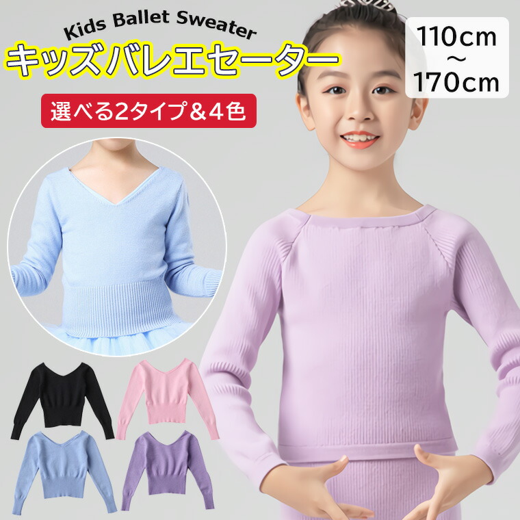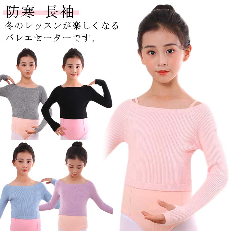 ジュニア バレエ衣装 女の子 長袖 子供 ウォームアップ ニットトップス キッズ ニット レッスン バレエ バレエトップス