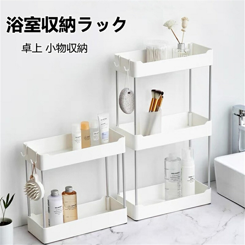 浴室収納ラック キッチンラック 卓上 小物収納 隙間収納 組み立て簡単 洗面台 キッチン コーナーラック すきま収納 台所 雑物 省スペース 2層収納棚 ミニフック付き 整理ラック