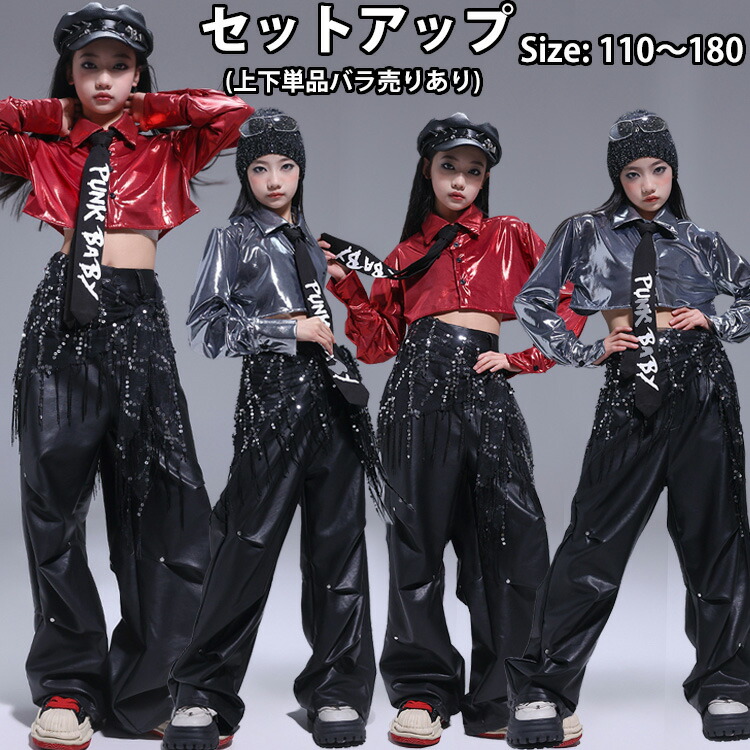 キッズダンス衣装 セットアップ ショートトップス キッズ ダンス 衣装 腰巻風 フットカバー バラ売り 単品販売 長袖 Tシャツ スカート バギーパンツ 長ズボン ヒップ ショートパンツ