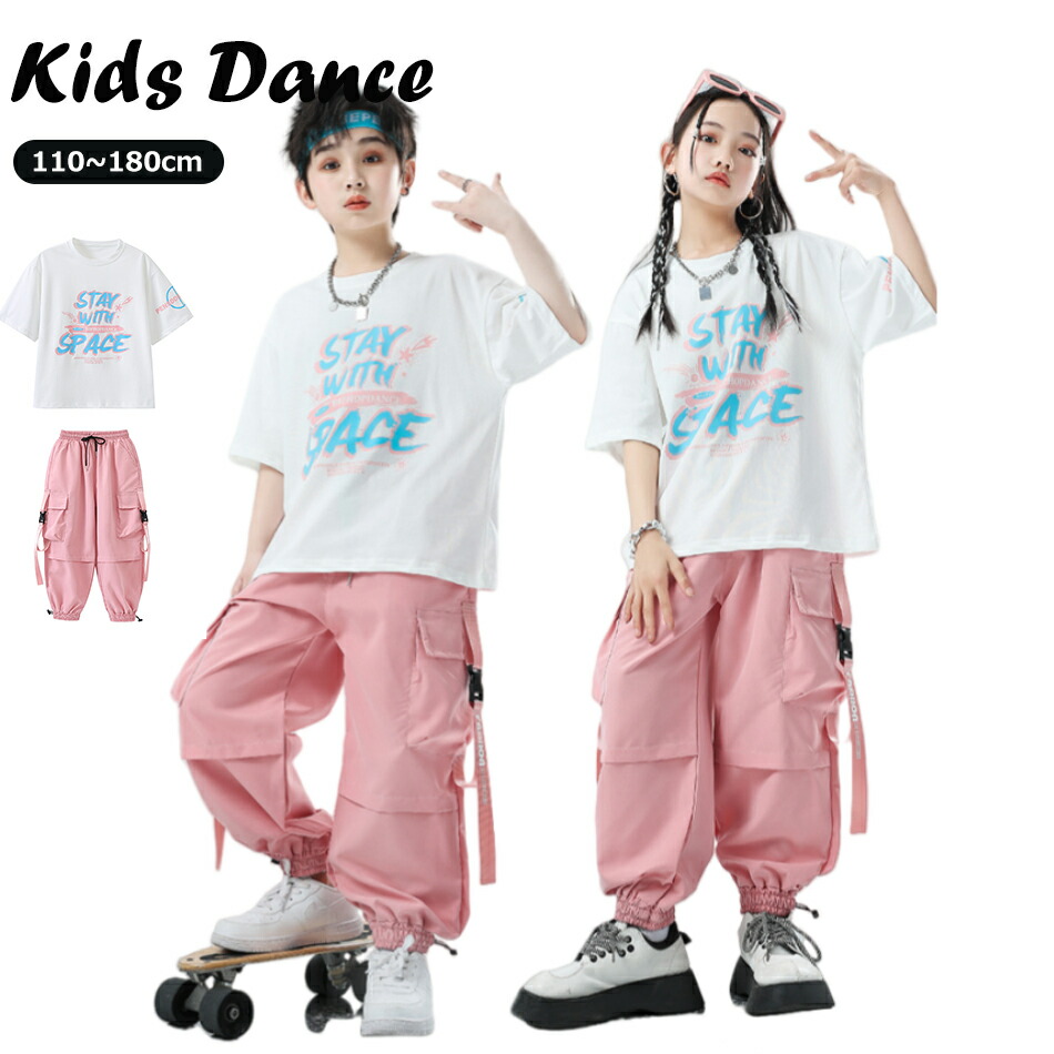 キッズ ダンス衣装 白 ピンク ゆったり 半袖 イベント トップス パンツ かっこいい 女の子 男の子 韓国 ヒップホップ HIPHOP K-POP ジャズ ダンス ダンスウェア 練習着 ストリート