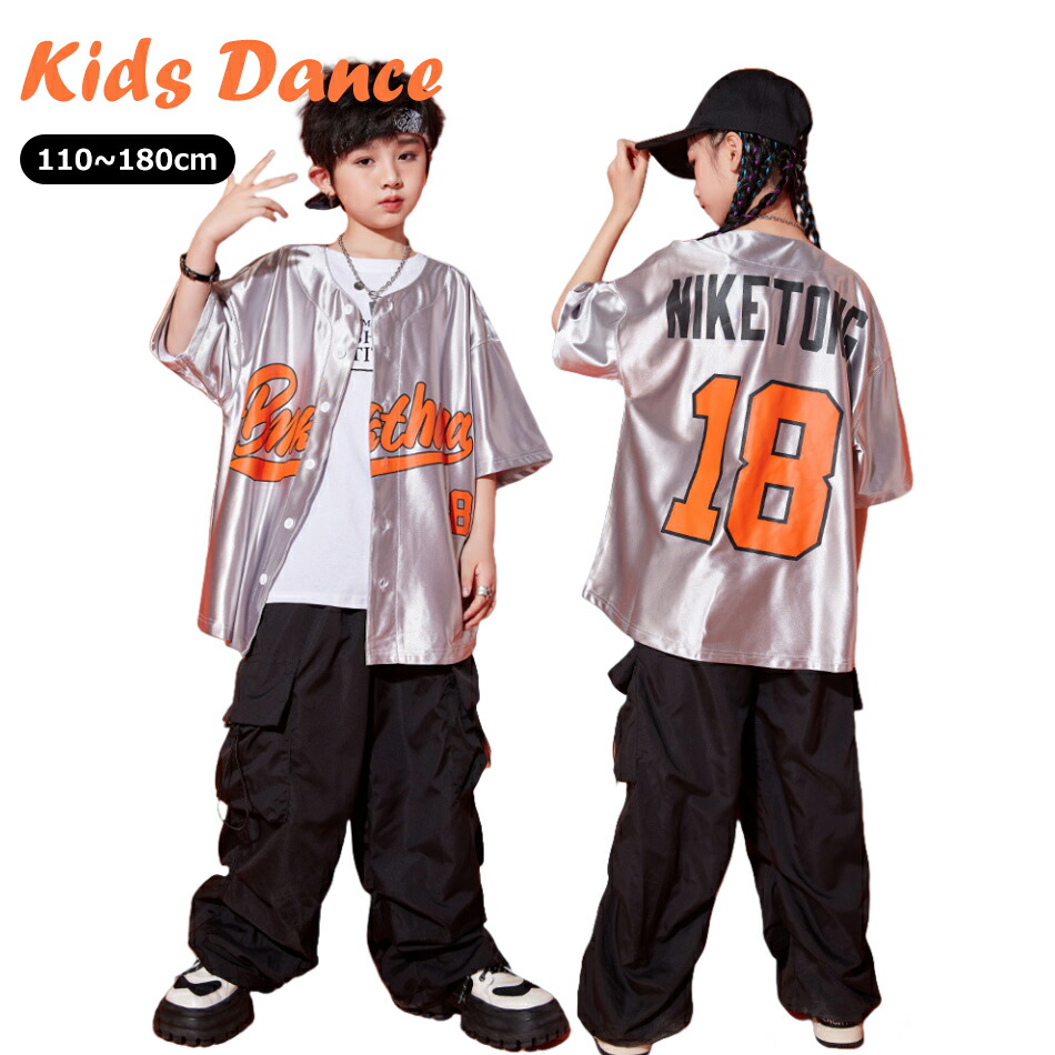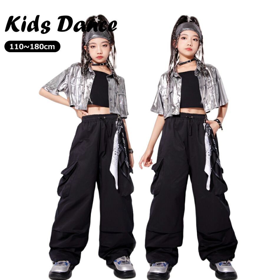 キッズ ダンス衣装 パンツ イベント トップス シルバー かっこいい 女の子 韓国 ヒップホップ HIPHOP K-POP ジャズ ズボン ストリート ダンス 練習着 演出服 発 ダンスウェア