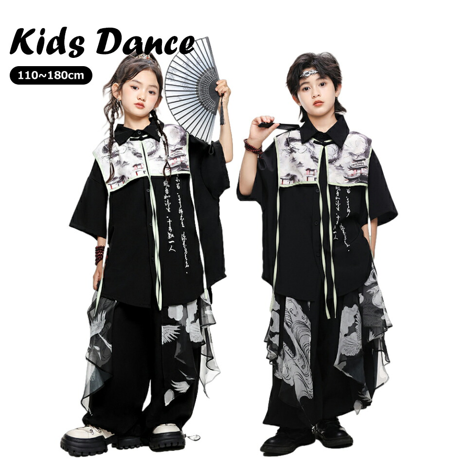 キッズ ダンス衣装 セットアップ イベント かっこいい 女の子 男の子 黒 中華風 ヒップホップ HIPHOP K-POP ジャズ ストリート ダンス ダンスウェア 練習着 発表会 団体服 応 演出服