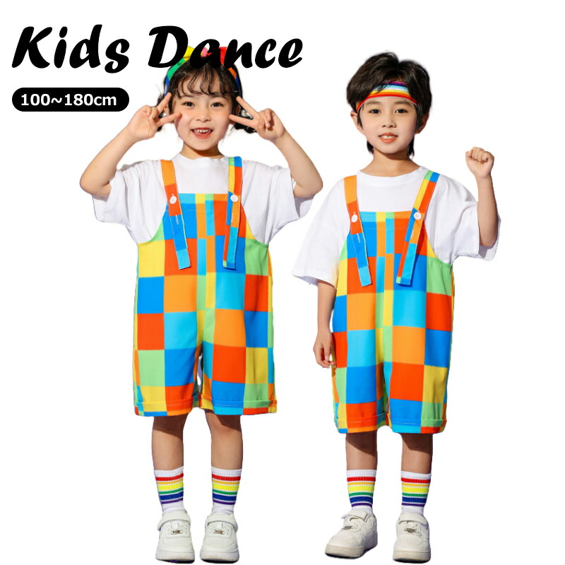 イベント服 遊戯会 虹色 サロペット 幼稚園 お揃い キッズ ダンス衣装 セットアップ イベント チアダンス かっこいい 女の子 男の子 韓国 ヒップホップ K-POP ダンス ダンスウ HIPHOP