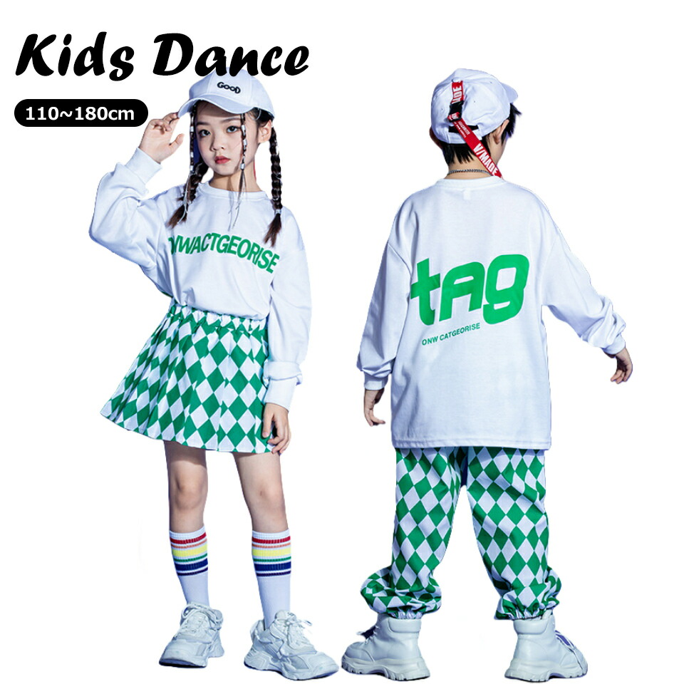 キッズ ダンス衣装 白 黒 チェック柄 スーツイベント トップス パンツ かっこいい 女の子 男の子 韓国 ヒップホップ HIPHOP K-POP ジャズ ストリート ダンスウェア 練習着 演 ダンス
