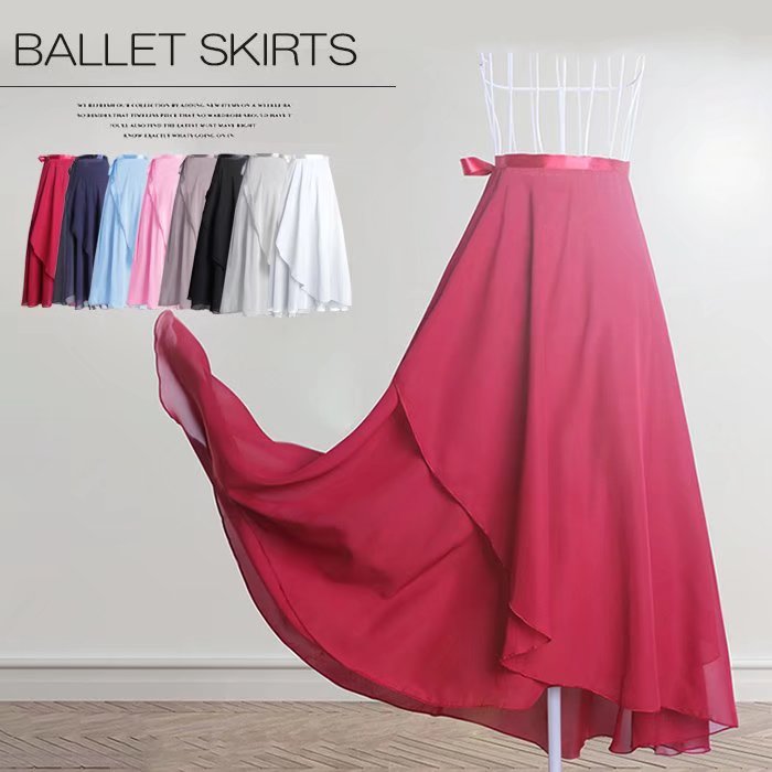 ふんわり揺れて美しいシルエット♪全19色 バレエ巻きスカート レディース ガールズ シフォンスカート 大人 練習着 ダンス ロング丈 レッスン着 衣装 発表会 バレエ用品 シフォン 社交ダンス 新体操