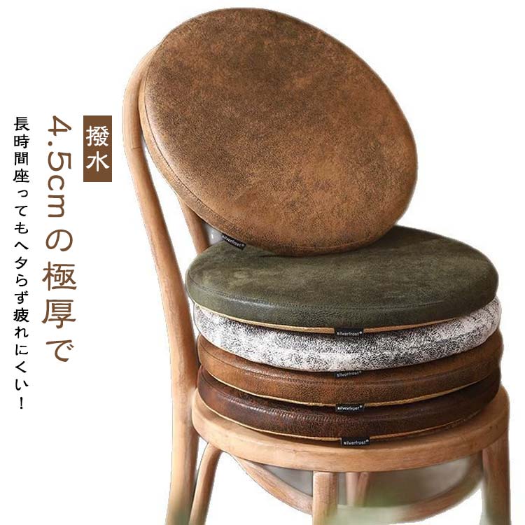防水加工 レザー 座布団 クッション 低反発ウレタン 丸 おしゃれ 円形 コンパクト 布地 スウェット コットン 3厚 ウレタン 北欧 モダン シンプル 無地 かわいい 疲れない