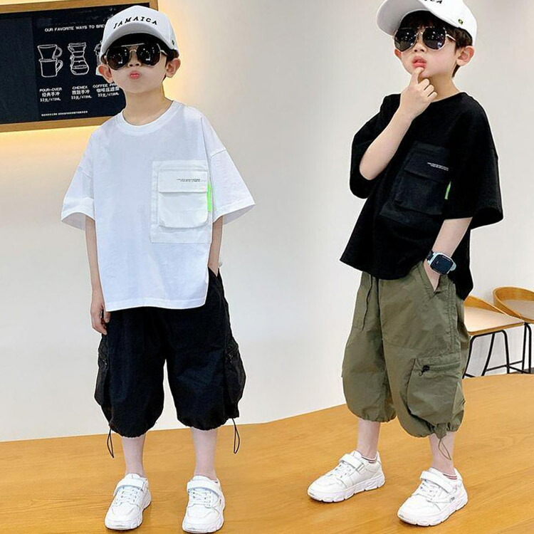 ショートパンツ キッズ tシャツ 男の子 ジュニア 2点セット ハーフパンツ 半ズボン 7分丈 短パン スポーツ ポケット付き キッズ 夏 トップス ボトムス 子供服 こども