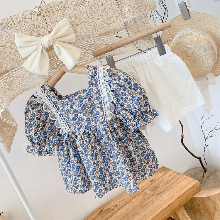 チュニック 半袖 キッズ カットソー ブラウス ショートパンツ 2点セット セットアップ Aライン プルオーバー ガールズ 子供 女の子 夏 かわいい 花柄 トップス 韓国服 こ コットン