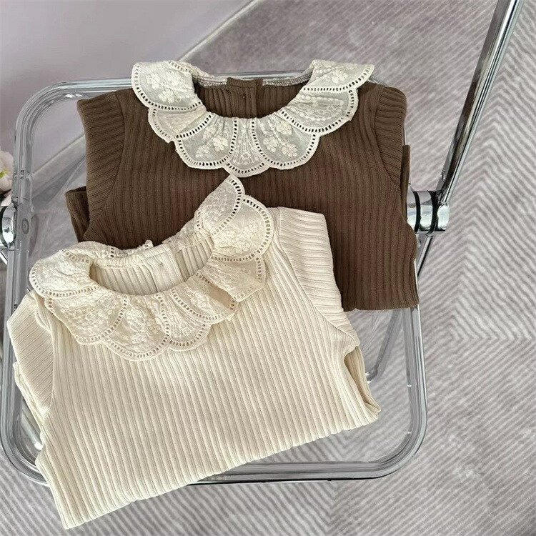 お揃い リブ フリル襟 ベビー服 カットソー フリルカラー 秋冬新作 レース トップス ベビー長袖Tシャツ ガールズ