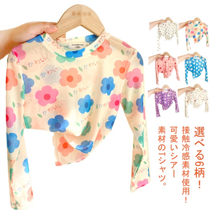 春 夏 長袖 冷感 花柄 カット キッズ トップス サマー シアートップス 日焼け対策 ステージ衣装 韓国 いちご柄 ドット柄 シャツ