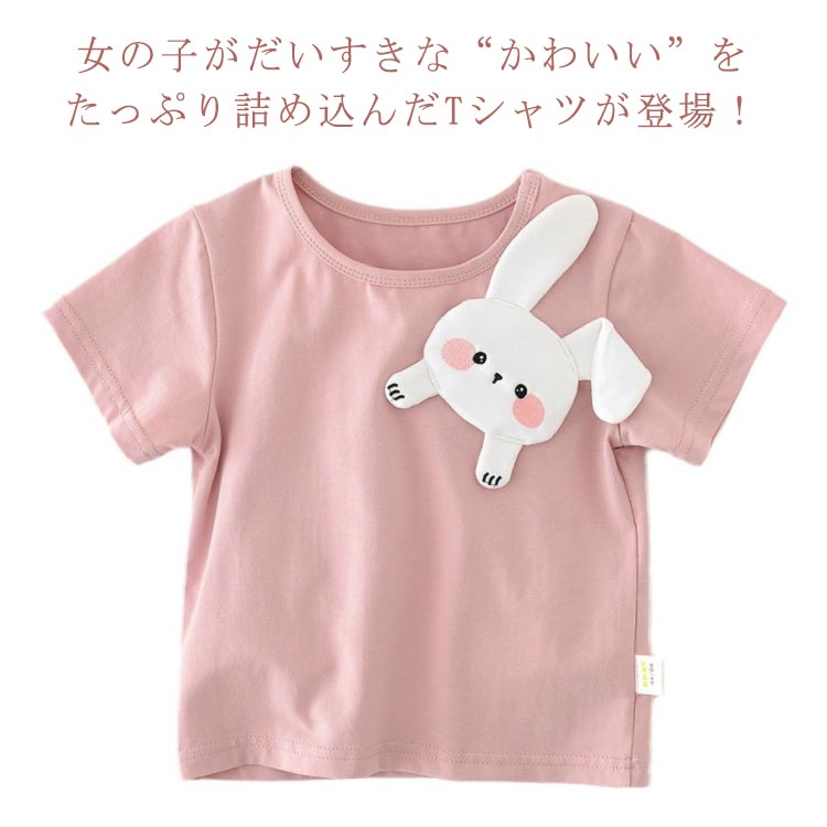 Tシャツ キッズ ベビー 女の子 半袖 夏服 ウサギ柄 ピンク 薄手 子供 子供服 キッズ服 ガールズ 夏 夏物 コットン 保育園 かわいい おしゃれ カジュアル 80cm 90cm 100 73cm