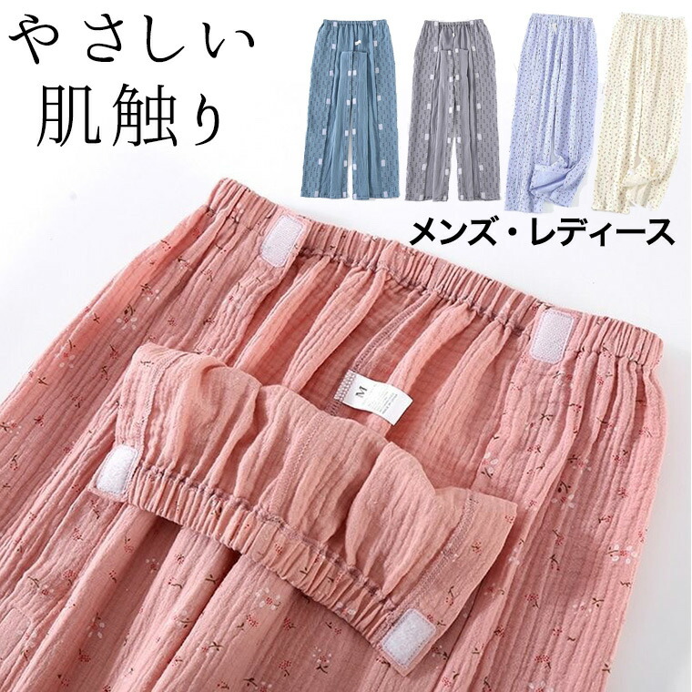 えらべるメンズ レディース 柔らかもっちり 涼しい 着せやすい 脱がしやすい 介護用 パジャマ パンツのみ 長ズボン ロング マジックテープ サイドオープン 男性用 レディス 女性 メンズ