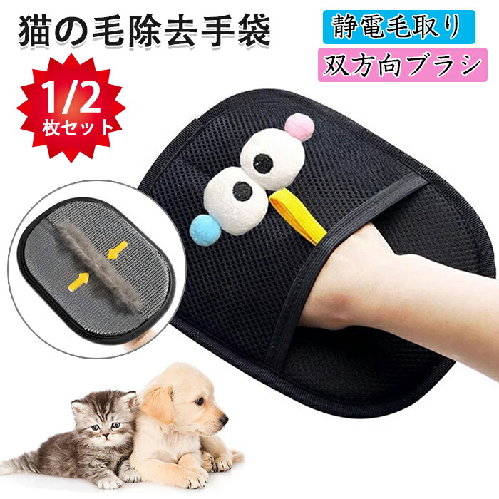 猫の毛除去手袋 らくらく抜け毛グローブ 猫 抜け毛グローブ らくらくブラシ ペット 手袋 ペット用 静電毛取り手袋 ブラシ 通気性UP 猫用ペット ブラシグローブ ペットの毛抜け手袋