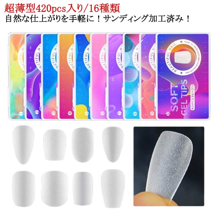 超薄型 ネイル クリア ショート 超薄 ネイルチップ 自然なフィット感 420pcsセット マット サンディング 薄型 足 スクエア アーモンド つ 脚