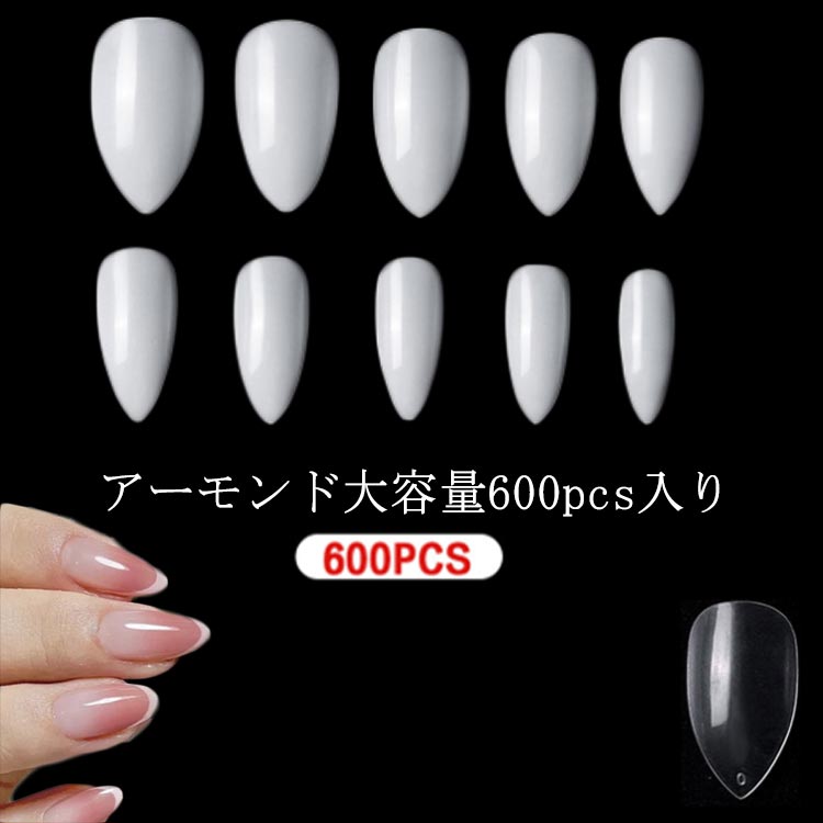 ネイルチップ クリアチップ クリア 600pcs チップ つけ爪 ナチュラル ショート ロング アーモンド 透明 大容量 フット