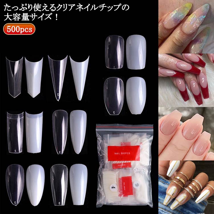 オーバル ネイルチップ 500枚セット 大容量 ネイルマップ ショート ロング クリア ロングオーバル 練習用 クリアチップ プレーン クリアネイルチップ サ フルカバー