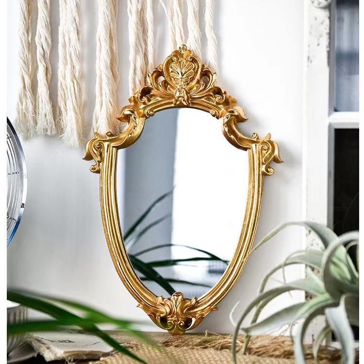 高品質 アンティーク 壁掛けミラー 卓上ミラー ガラス 樹脂 ゴールド 2WAY 鏡 インテリア アクセサリー トレイ 化粧品 トレー 撮影用 上品 海外雑貨 ミラー インスタグラム 大人 プレゼント