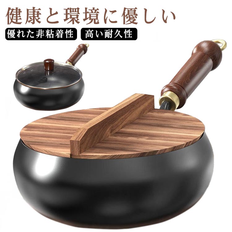 送料無料 錆びない 軽量設計 電磁調理器対応 調理可 木蓋付き 無塗装 高温炒め物専用 家庭用 小容量 一人暮らし 木柄仕上げ 家庭用調理器具 鉄フライパン 化学コーティング無添加