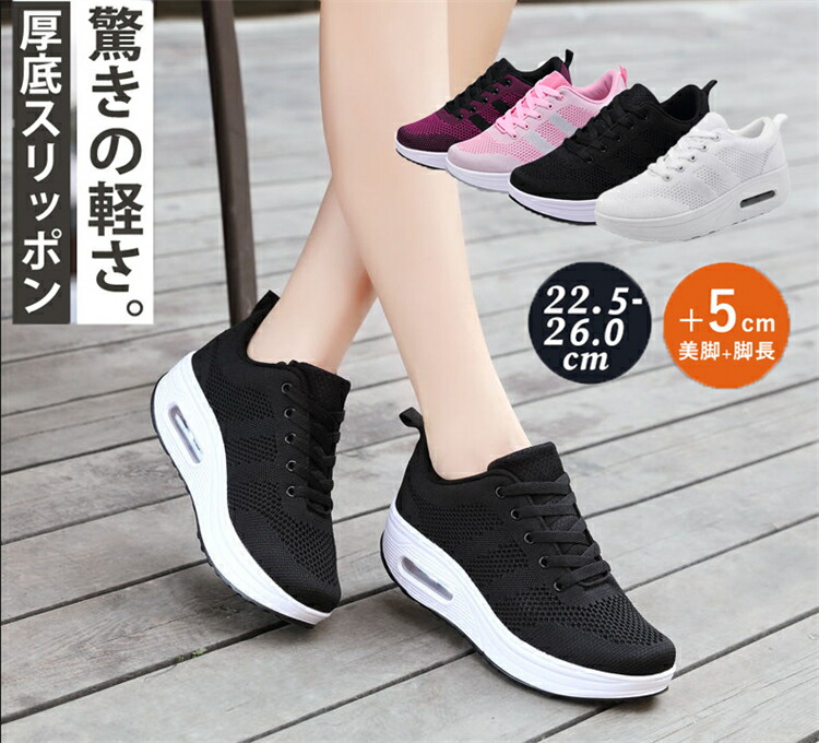 ダイエッ ランニングシューズ 5cm身長アップ 運動靴 エアークッション スポーツシューズ レディース 厚底 ウォーキングシューズ