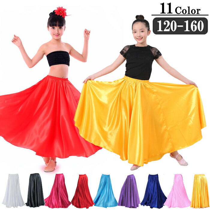 キッズ スカート ロングスカート 子供 ダンス 衣装 サテンスカート フレアスカート ドレス ペチコート パニエ フラメンコ衣装 ラテンダンス 社交ダンス コーラ ベリーダンス