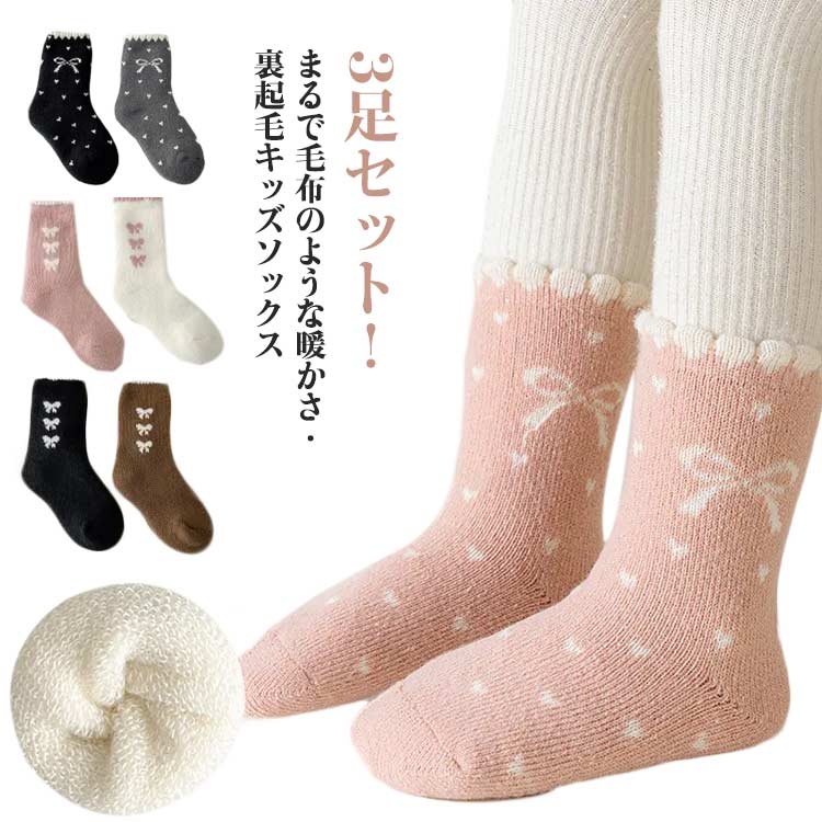 キッズ 靴下 3足セット 裏起毛 女の子 ソックス くつ下 あったか ぬくぬく 厚手 防寒 秋 冬