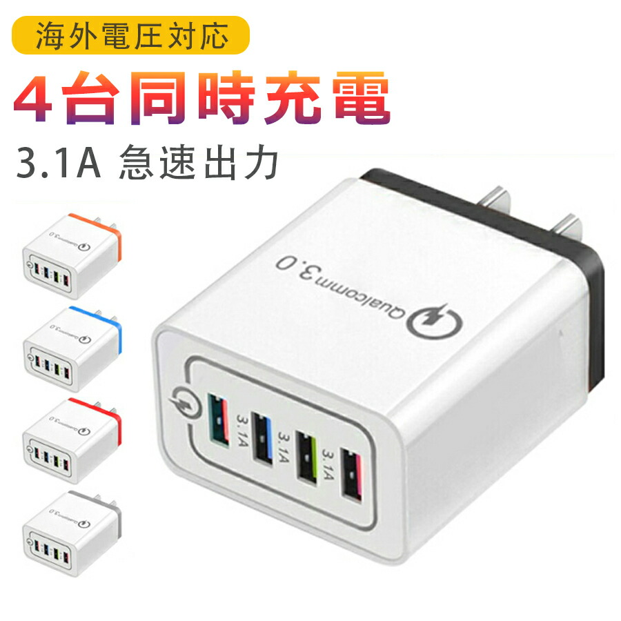 \超目玉商品/ACアダプター USB充電器 スマホ充電器 4ポート QC3.0搭載 チャージャー 海外対応 急速充電 同時充電 iPhone Type-c Galaxy Xp Android