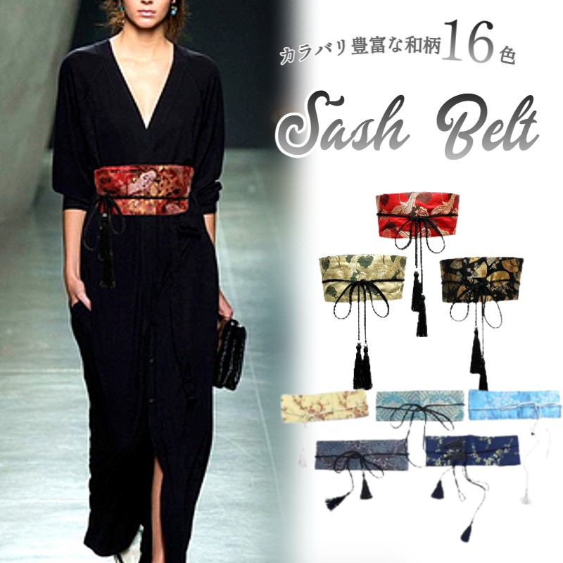 カラバリ豊富でおしゃれな和柄ベルト サッシュベルト 着物帯風ベルト 帯 レディース ベルト 帯締め風の飾り紐 和装 和服 雅 和テイスト かわいい おしゃれ 映え 写真撮影 学園祭 文化 レトロ