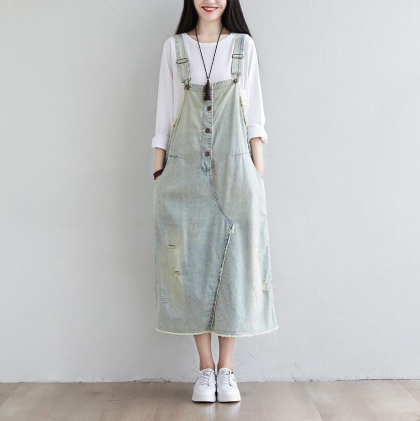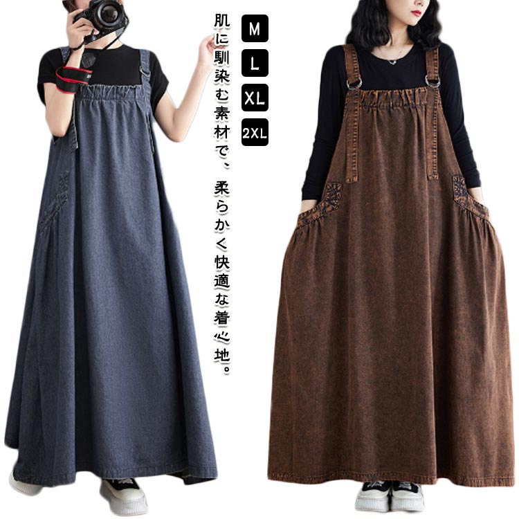 ジャンパースカート デニム レディース ロング デニムワンピース サロペット ワンピース 夏 ゆったり 大きいサイズ