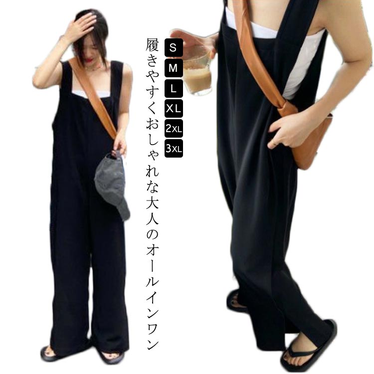 オールインワン レディース サロペット セットアップ 個性的 大きいサイズ 2点セット ワイド パンツ ロング マキシ 袖なし S M L XL 2XL 3XL 4XL 5XL 無地 夏 通勤 通 春