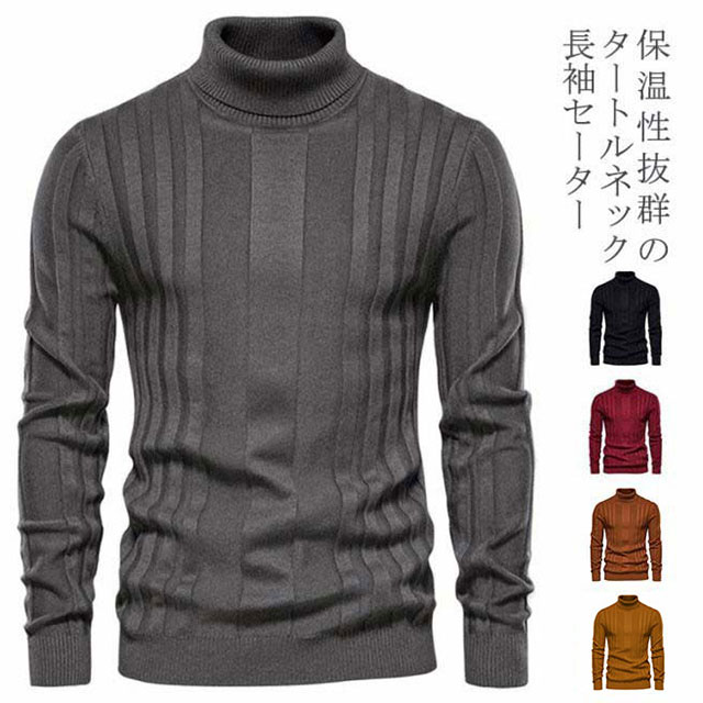 セーター メンズ ニットトップス 薄手 無地 リブニット トップス ニットセーター タイト 長袖 インナーニット ゆる ハイネック タートルネック オシャレ