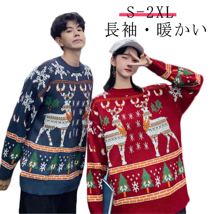 セーター クリスマス あったかい トナカイ カリブー 秋冬 レディース プレゼント 贈り物 Merry Christmas カップル 親友 かわいい ペアルック カジュアル 大きめ ニット メ ギフト